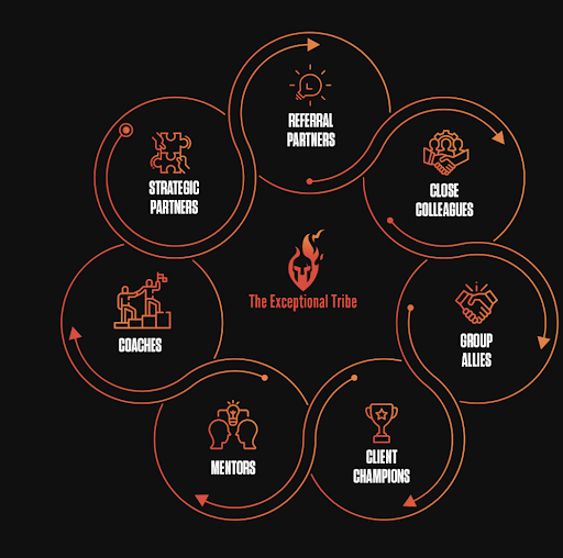 The community we are building at The Exceptional Tribe is what happens when 120 people driven by a passion to improve upon their marketing, business development, operations, growth rate and leadership come together under one umbrella. In this place, you find content, courses and coaching to help you elevate to your biggest aspirations in these areas of growth – and exceed them.